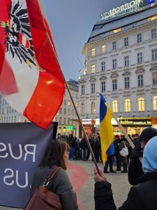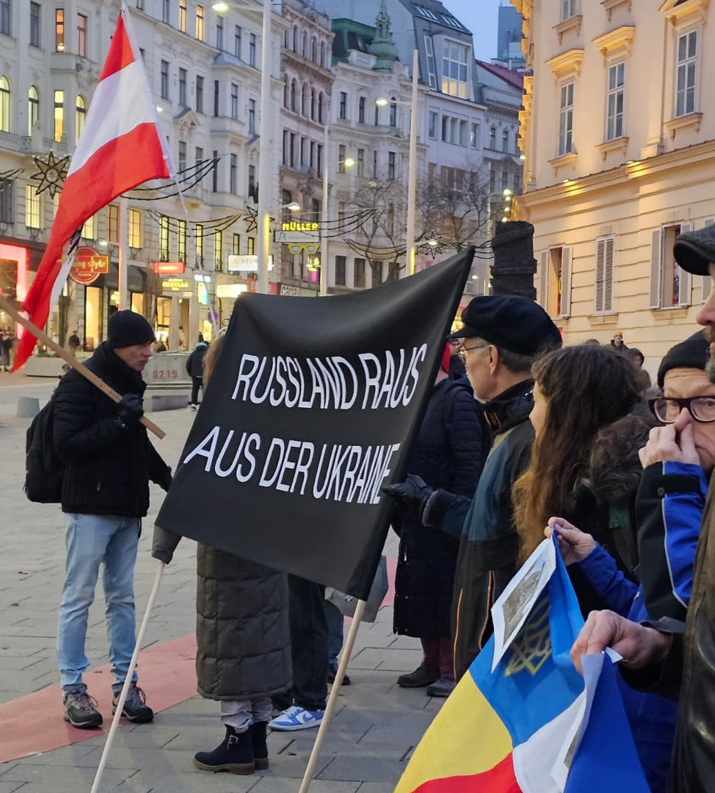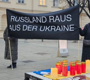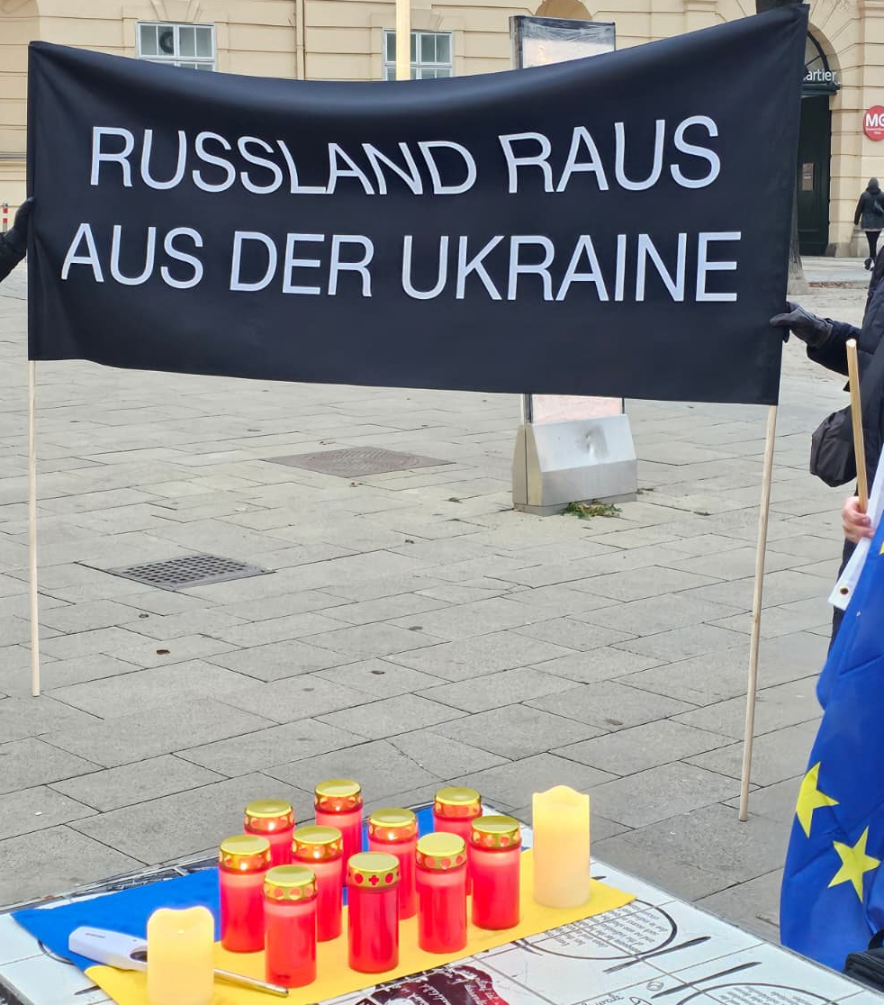 Um die österreichische Unterstützung für die Ukraine zu artikulieren, haben wir (eine Gruppe von zivilgesellschaftlichen Aktivist:innen) uns zusammengetan und veranstalten jeden Donnerstag jeweils von 16 bis 17 Uhr eine Mahnwache am Platz der Menschenrechte, Mariahilfer Straße 1, 1070 Wien.